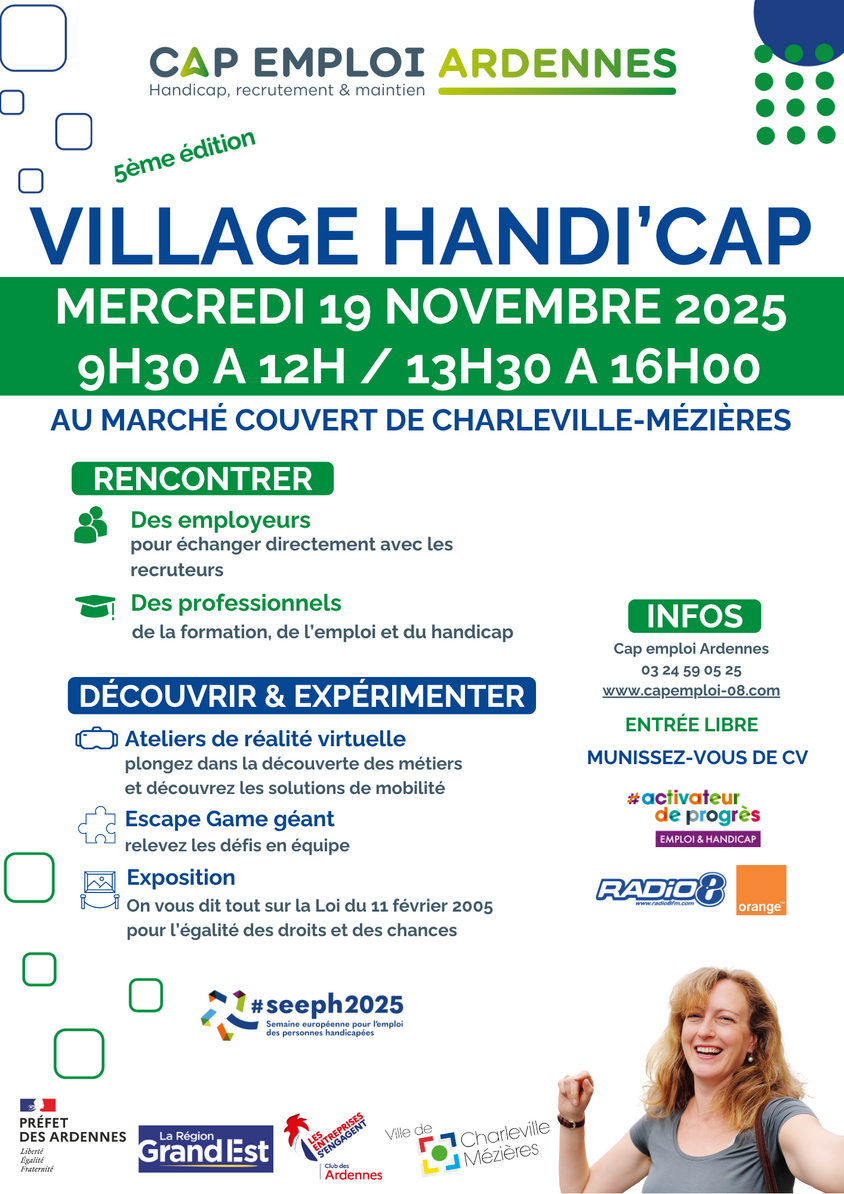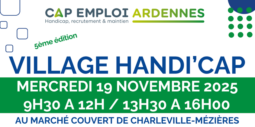 Cap emploi 08 organise la 5ème édition du Village Handi'Cap sur la thématique : " HANDICAPS ET EMPLOI : L'EGALITE POUR TOUTES ET TOUS ! "