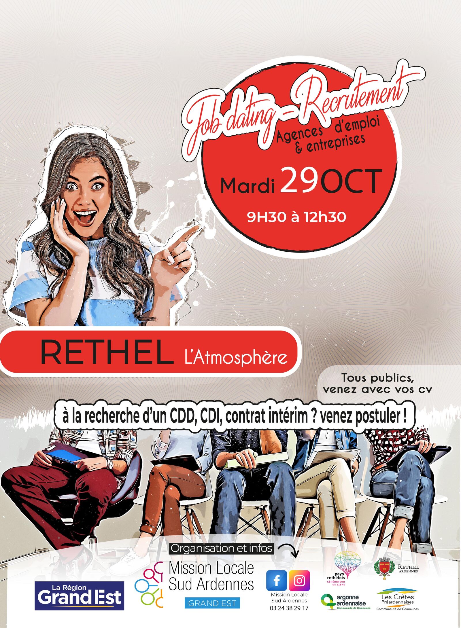 « JOB DATING des AGENCES d’EMPLOI et des ENTREPRISES « le mardi 29 OCTOBRE de 9h30 à 12h30 à la salle l’Atmosphère à Rethel.