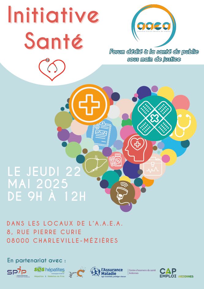 Comment cela va se passer ? Chaque acteur santé aura à sa disposition un bureau dans lequel il pourra accueillir en toute confidentialité les bénéficiaires de l’action (vous pourrez choisir de rencontrer les personnes en individuel ou en groupes, selon votre préférence). Ces derniers seront exclusivement sous-main de justice et orientés, entres autres, par le SPIP des Ardennes mais également par les Services Publics de l’Emploi. Les entrées et sorties seront libres, ce sont les équipes de l’A.A.E.A. qui se chargeront d’accueillir et d’orienter les bénéficiaires vers les acteurs de santé, selon leurs besoins et demandes. L’objectif, bien sûr, étant qu’ils rencontrent tous les acteurs santé présents au cours de la matinée.